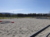 Wir haben ein beleuchtetes Sandviereck (20x20m) das zur Verfügung steht, eine Reithalle ist mit dem Auto in 15min erreichbar.